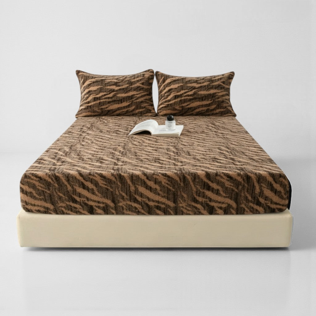 Transform your bedroom into a cozy retreat with the Leopard Print Faux Rabbit Fur Fitted Sheet Mattress Cover. Crafted from high-quality thickened faux rabbit fur, it provides luxurious warmth and comfort. The earth-tone leopard print design effortlessly blends with your existing decor, enhancing the elegance of any bedroom. Designed for a snug fit, this wrinkle-resistant cover ensures a tidy, luxurious look throughout the night.